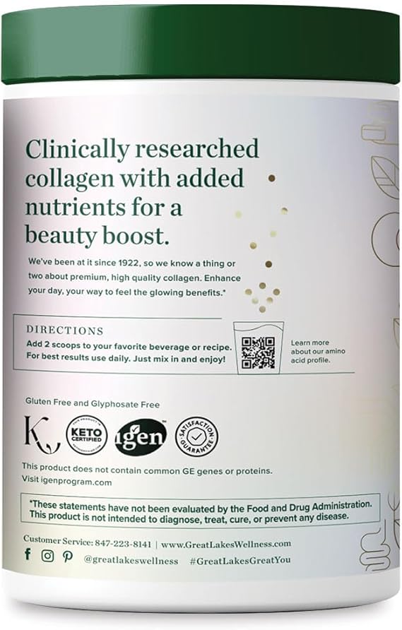 فرمول هیدرولیز شده: راهی آسان برای افزودن کلاژن به رژیم غذایی شما. پودر پپتیدهای کلاژن Great Lakes Wellness با افزایش سن، از تولید کلاژن پشتیبانی میکند. برای آقایان و خانمها مفید است.